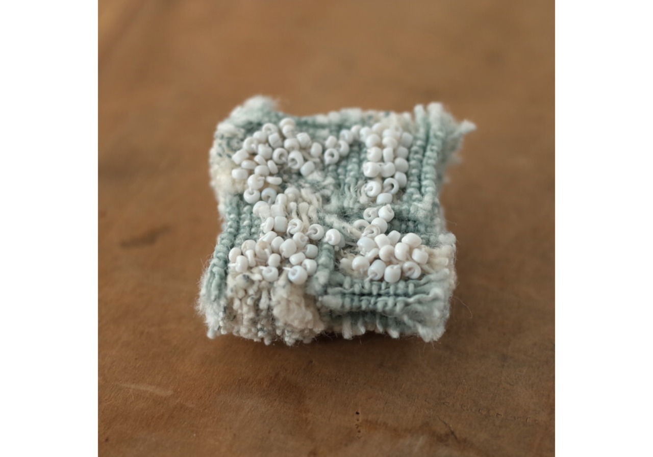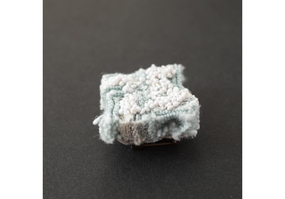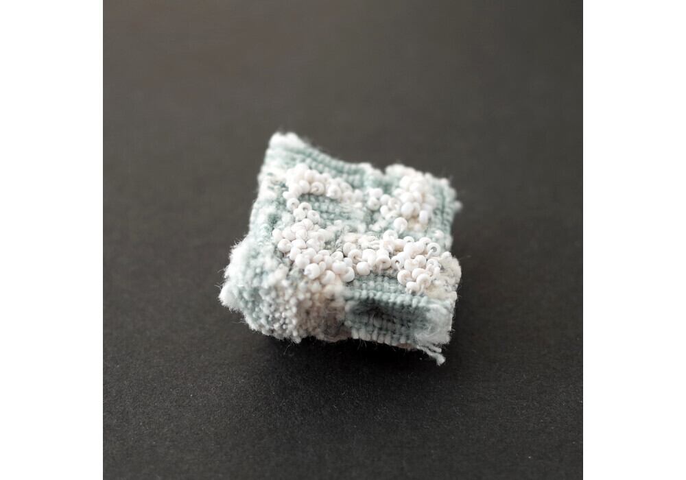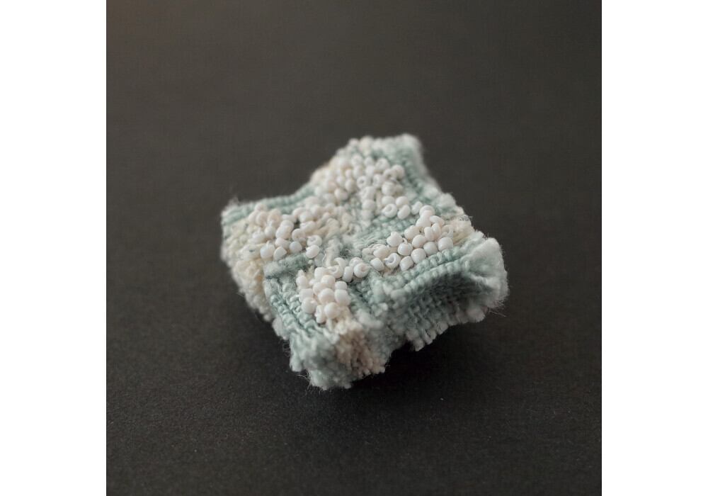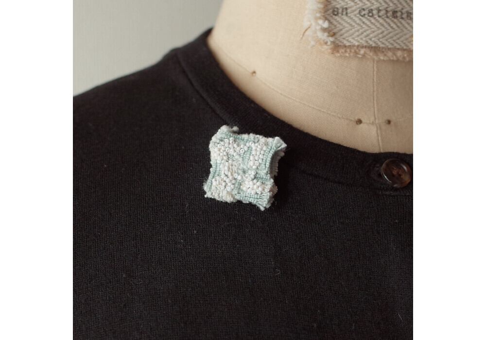 This brooch is made by sewing a small piece of fabric.