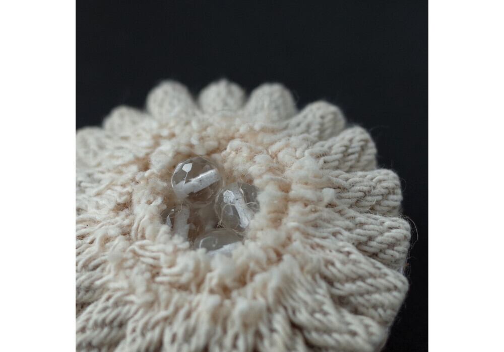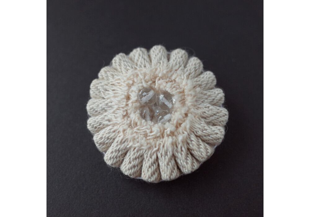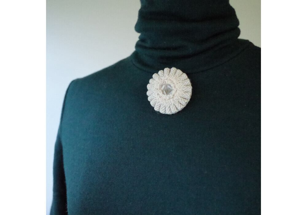 Cette broche est réalisée en cousant des petits morceaux de tissu.