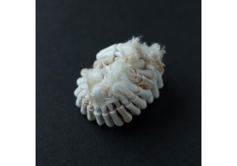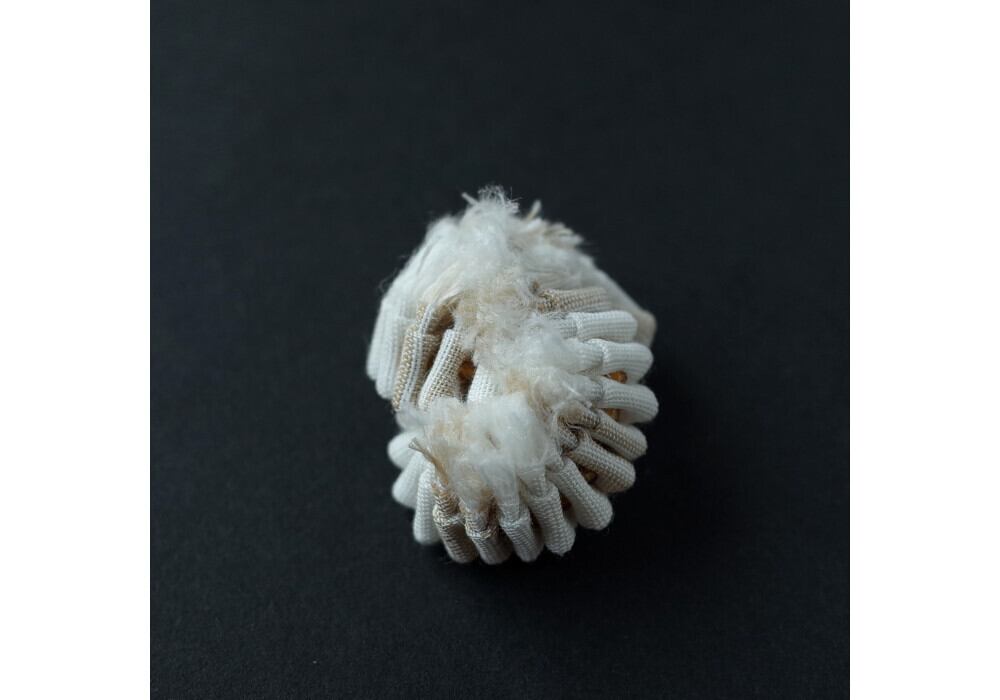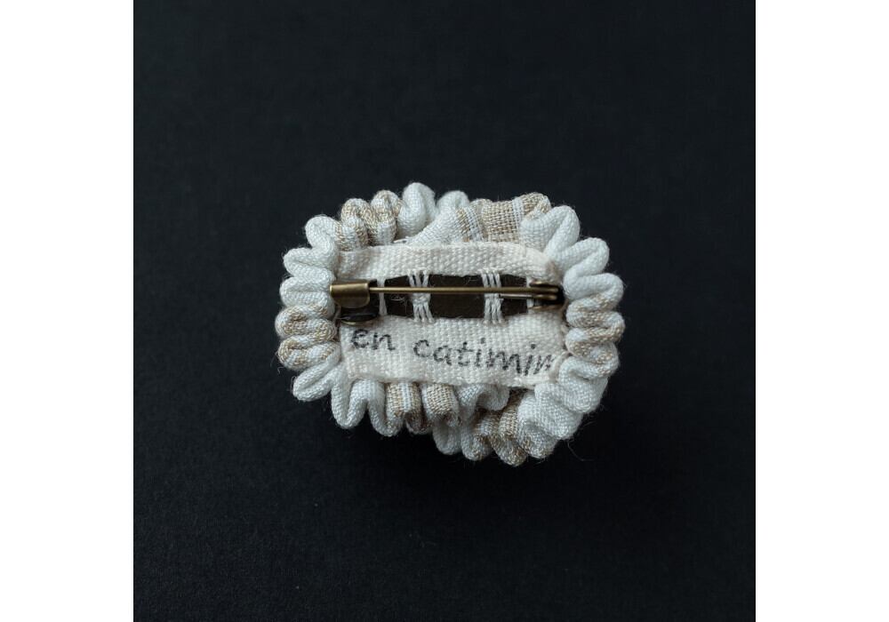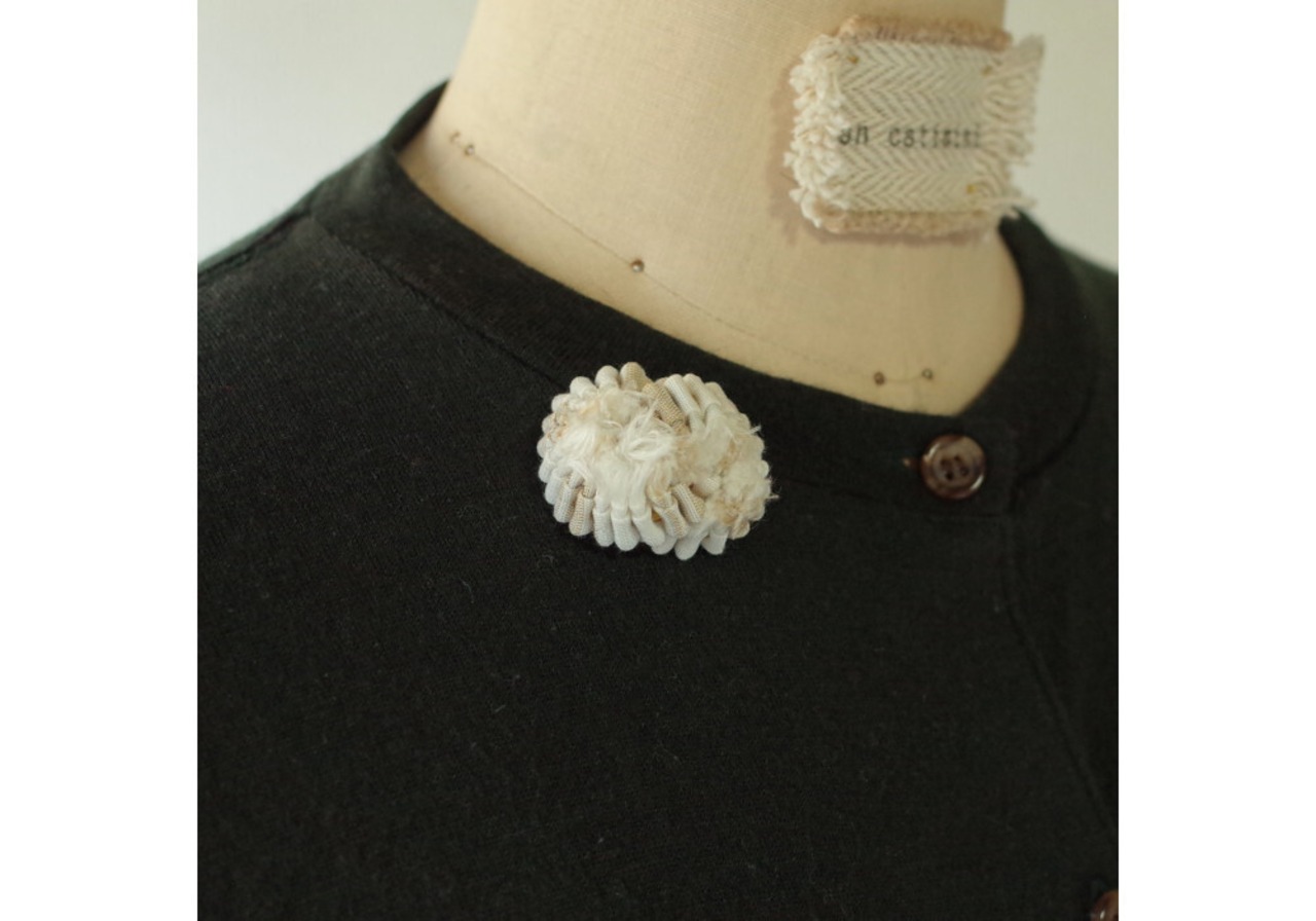 Cette broche est réalisée en cousant des petits morceaux de tissu.
