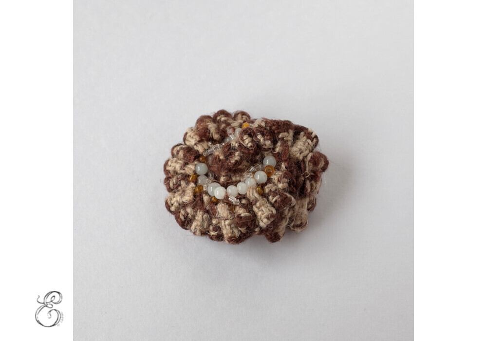 Cette broche est réalisée en cousant des petits morceaux de tissu.