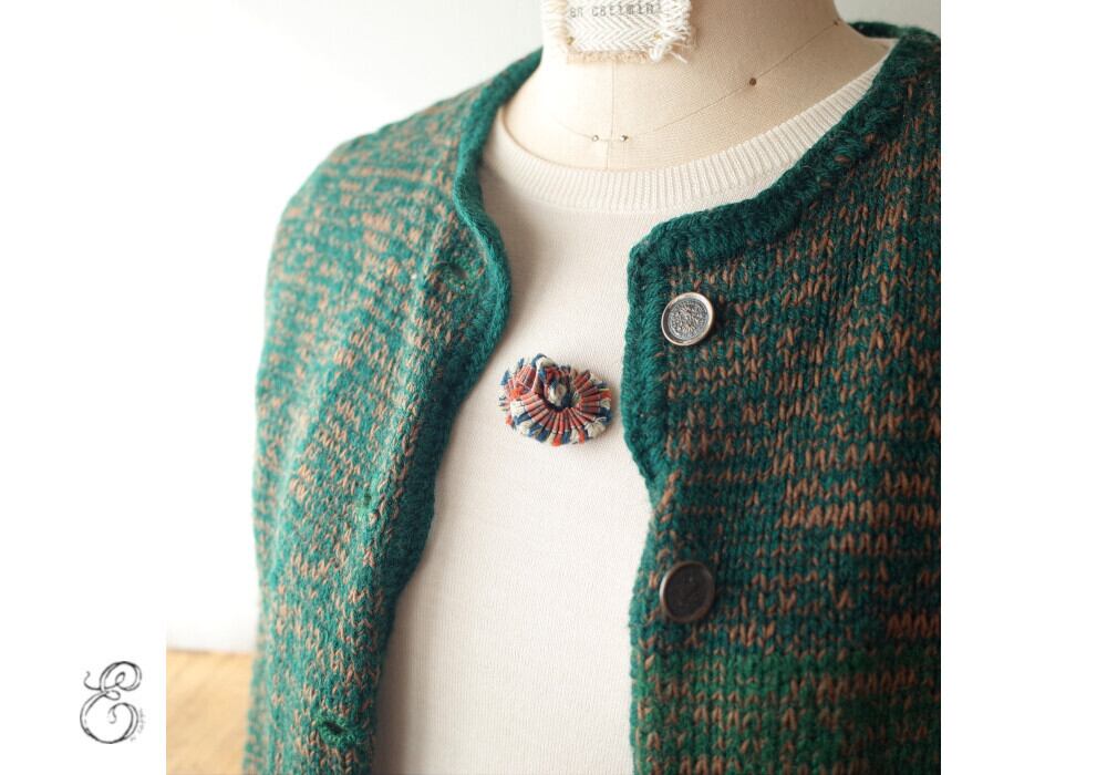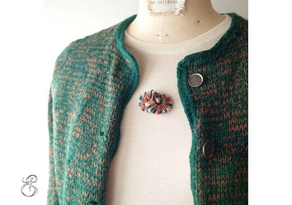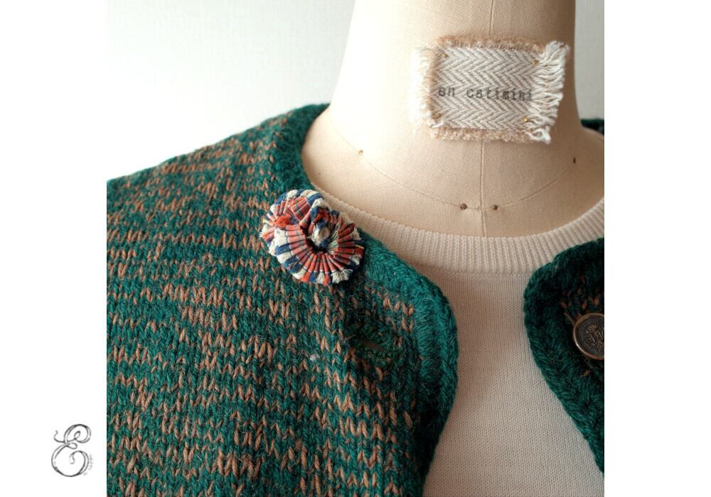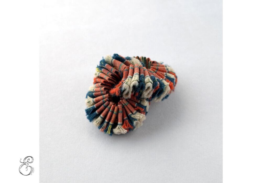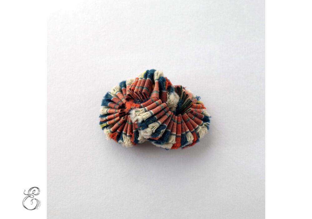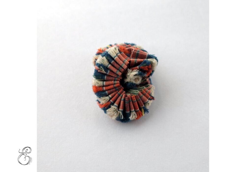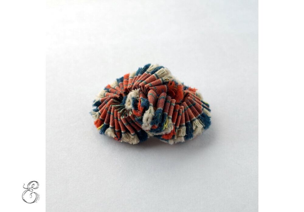 Cette broche est réalisée en cousant des petits morceaux de tissu.
