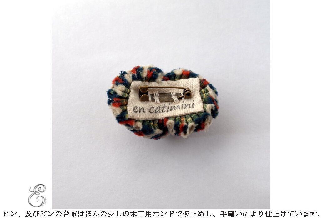 手法:手縫い *ピン、及びピンの台布はほんの少しの木工用ボンドで仮止めし、手縫いにより仕上げています。